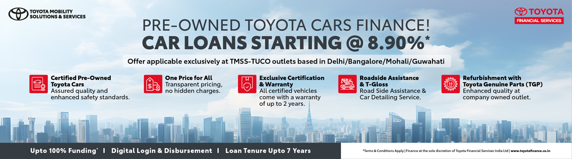 Toyota Certified Pre Owned cars at TUCO- company owned outlets promise high standards of quality, safety, and reliability. Each vehicle undergoes a rigorous certification process and refurbishment using Toyota Genuine Parts (TGP) at Toyota’s own facility, ensuring long term performance and peace of mind. With transparent one price assurance, there are no hidden costs—just complete confidence from day one.